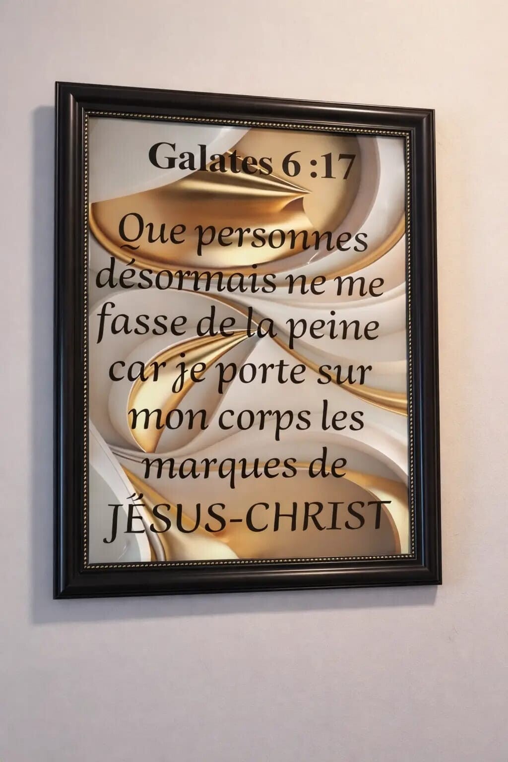 Ce tableau se distingue par son fond lumineux aux reflets dorés évoquant la lumière et la gloire divine. Son cadre élégant et sa typographie raffinée en font une pièce décorative forte et inspirante, parfaite pour un salon, une salle de prière ou même une église.